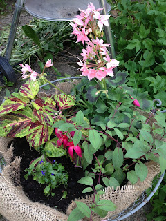 Är väldigt förtjust i pelargoner. Gick loss på den ena pelargonen så att det förhoppningsvis blir tre plantor till om de tar sig. Planterade om den röda stjärnpelargonen i lerkruka. Lite fick jag gjort ute… innan jag gick in och såg till att utfodra de gapande avkommorna.
