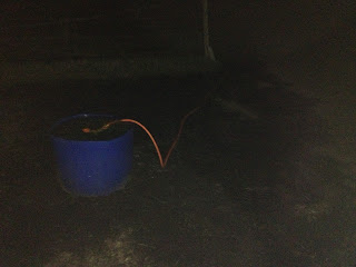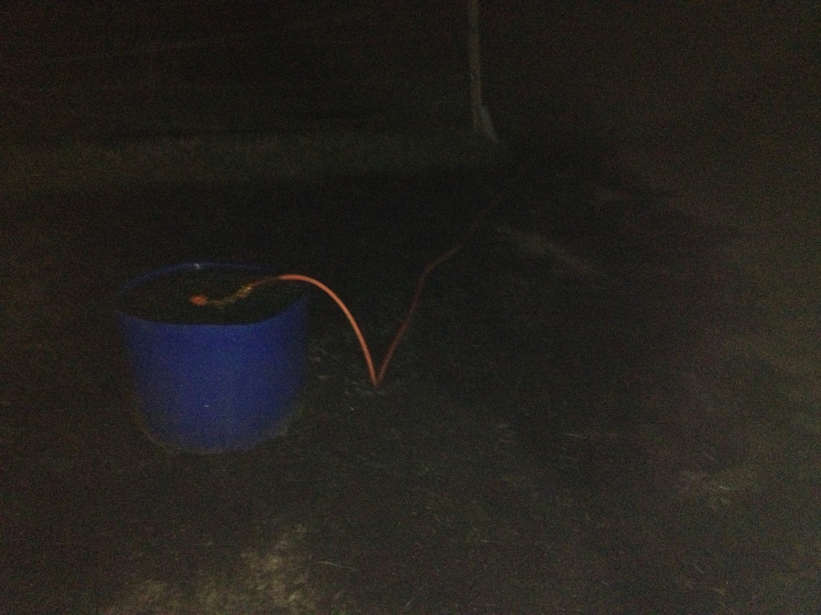 Det syns inte speciellt tydligt på bilden (det där med att ta kort med iphonen när det är mörkt med blixt fungerar så där) men det går att skönja allt det mörka vattnet nedanför och till höger om vattentunnan.