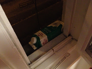 Är mycket nöjd över min improviserade kylskåpslösning som gör att jag kan få mjölk i teet. Känns nästan lite som när jag i min ungdoms glada dagar var ute och reste, så där lite kontinentalt helt enkelt.
