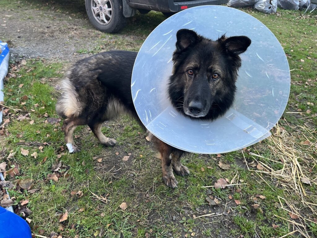 Idag har Ruths lilla knuta opererats bort. Operationen gick bra och Ruth mår bra. Hon har varit lite trött efter sederingen men hon är vid gott mod. Ruth är inte helt förtjust i tratten men hon är verkligen inte speciellt berörd av att ha den på. Stygnen ska tas om knappt två veckor så det blir länge att ha tratt. Största utmaningen blir att hålla henne så stilla det går de närmaste dagarna.