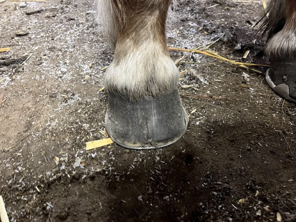 Det tar tid men Skàldas hovspricka läker ihop fint. Tänk vilken panik jag hade i höstas innan jag fick tag på en hovslagare som kunde sko ihop den gigantiska hovsprickan. Hon har haft en traumatisk vecka, stackars Skàlda. Först veterinärbesök i förrgår för vaccination och sen hovslagaren idag. Hon tror hon är ett hispigt fullblod eller nåt istället för en fet islänning. Audna tar det hela med ro, både veterinärbesök och hovslagare.