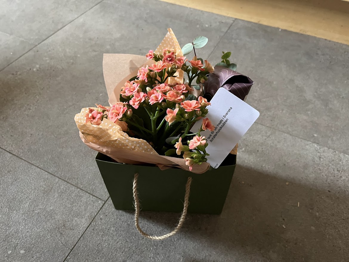 Tackar, det kom blomma och praliner från Svenska Schäferhundklubben efter att ha klivit av posten som vice ordförande i centralstyrelsen. Har fortsatt uppdrag i avelskommittén och hälsogruppen som är både roligt och intressant. Har också uppdraget som sammankalande i valberedningen.