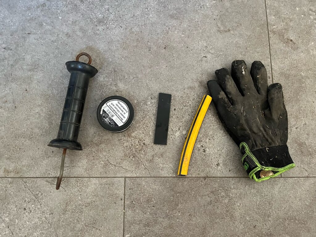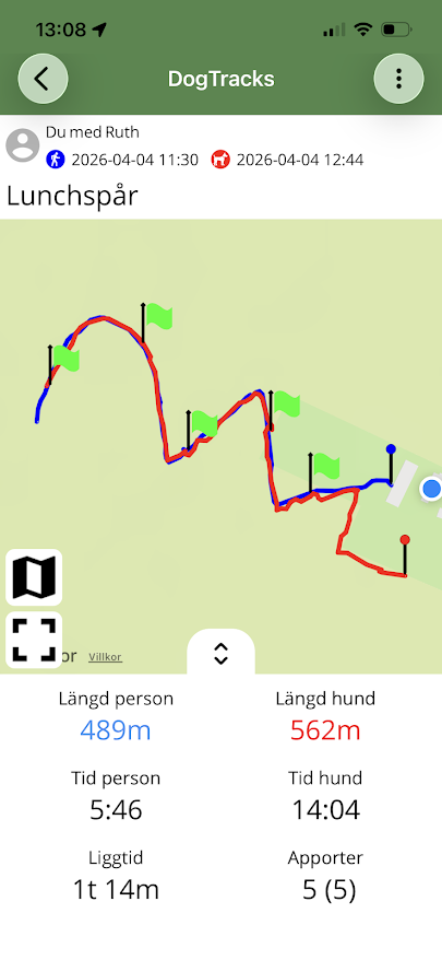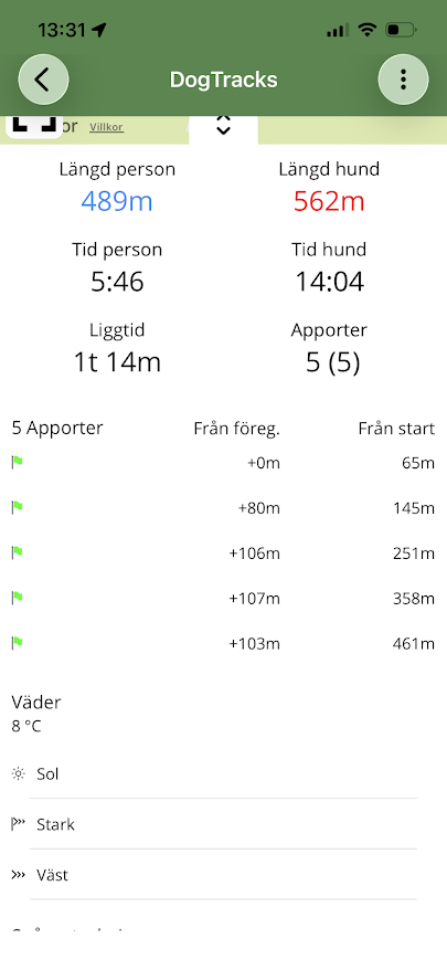 Det blev ett spår i halv storm idag igen. Höll nästan på att blåsa bort. Ruth är så frustrerad när hon väntar under tiden jag lägger spåret. Sen blir hon så lycklig när vi ÄNTLIGEN går ut för att ta det. Fem apporter idag. Ett grindhandtag, en snusdosa, en bit läderkoppel, en bit vattenslang och en gammal handske som sett sina bästa dagar. Man tager vad man haver. Apport tre och fyra missade hon men tog dem på leta-kommando. Det kan också vara så att hon faktiskt tog dem men att matten missade hennes markering på typ en halvsekund medan hon springer förbi.