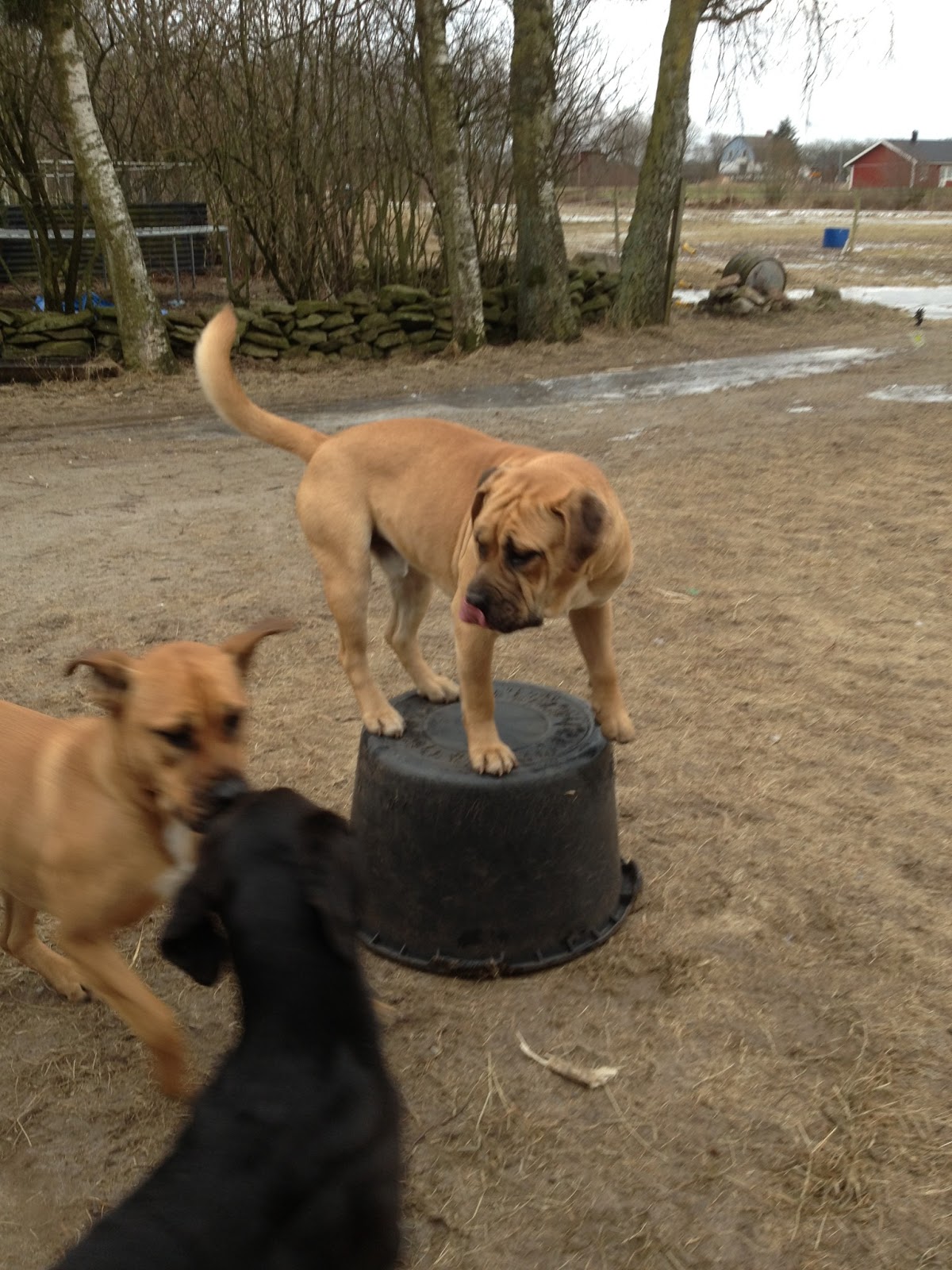 Så Buddha. Dels i lugnt sofftillstånd, dels i handgemäng med hans antagonist vattentunnan… Observera det underbara öronflaxet på Hugo. 🙂
