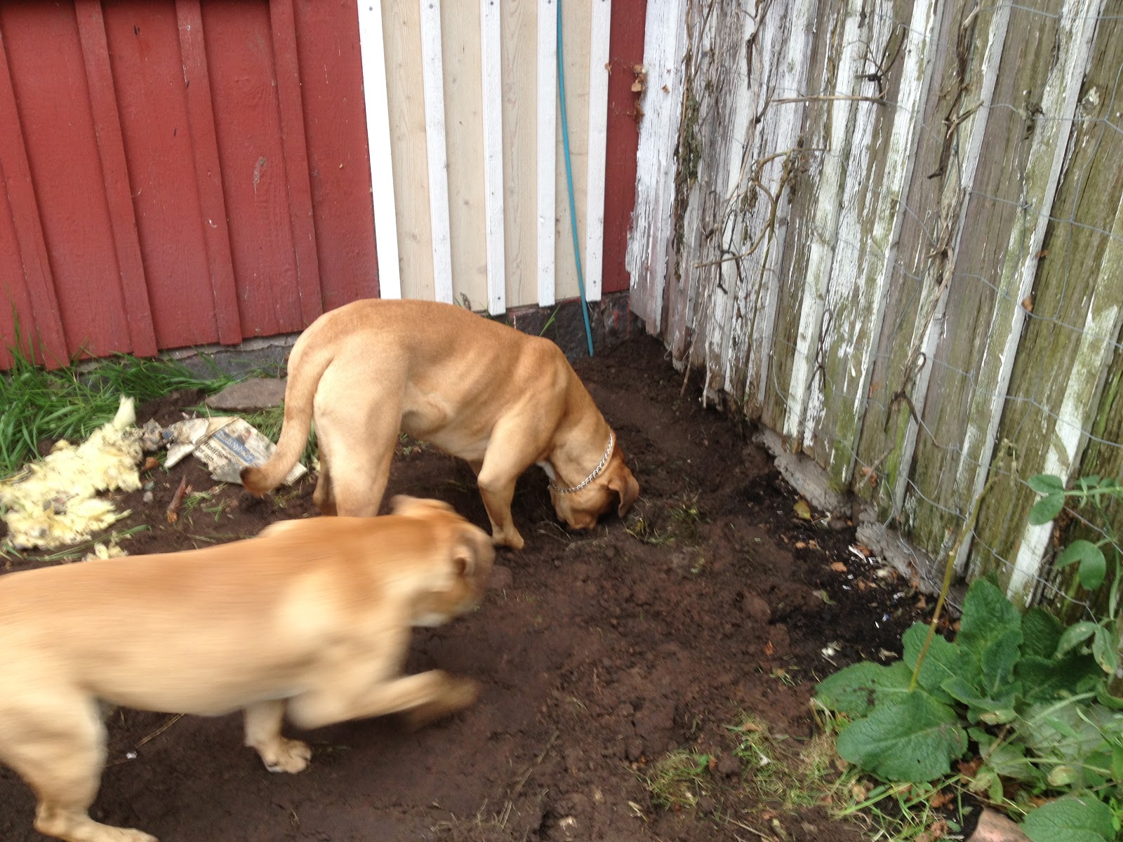Grävaren körde in annan väg idag för att komma in i trädgården och lägga igen schakten. Några fler fastkörningar verkade onödigt. Nu är gärdsgården tillbakalagd igen. Jag har stängslat om för att hålla monsterhundarna hemma och möjliggöra för entreprenören att komma åt för att skarva ihop slangarna. Då återstår finliret i trädgården med att kratta så att det blir en hyfsat jämn gräsmatta igen och kanske slänga ut lite gräsfrön. Men det får bli en annan dag, har ägnat mig nog åt kroppsarbete för den här helgen. Nu får det bli vila resten av den här söndagen…