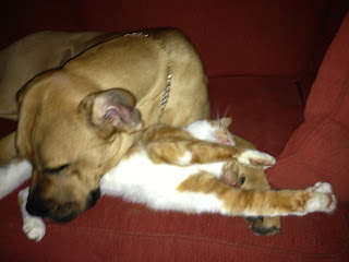 Det här är en kärlekskrank och ömhetstörstande Sören som frivilligt gosar in sig hos Hugo. Samma hund som för några veckor sen höll på att ta livet av honom. Underbart att se!