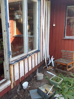Eftersom rörmokaren ändrade planerna och kommer för att kika på värmekulverten först imorgon fm istället för i eftermiddags hade jag helt plötsligt tagit tag i fasaden där altanen så småningom ska bli till.