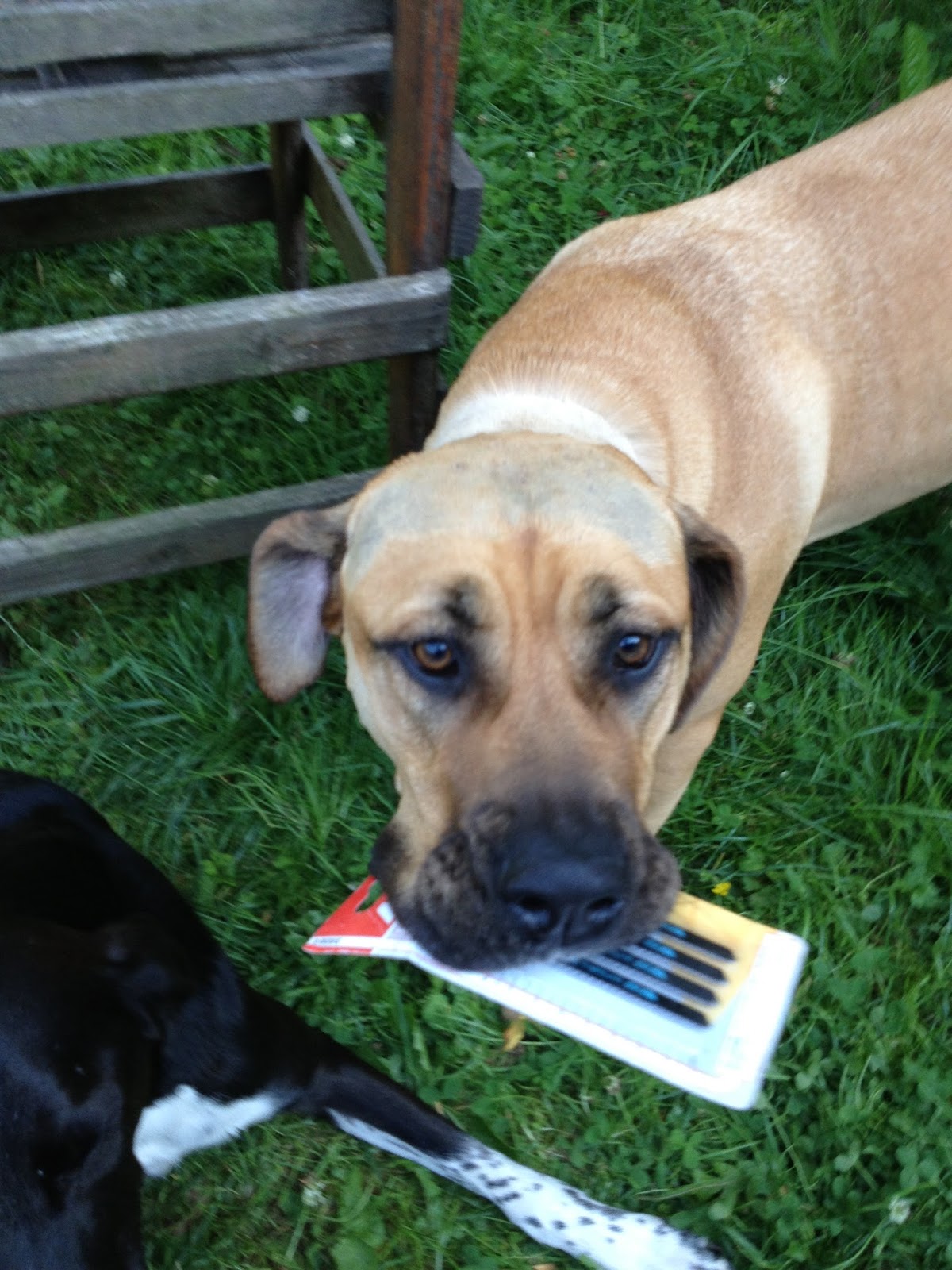 Hugo stjälpte till som vanligt. Snodde bortrivna plankbitar och tuggade på.