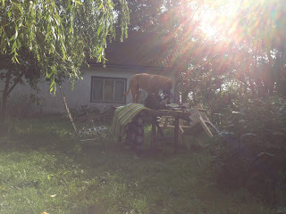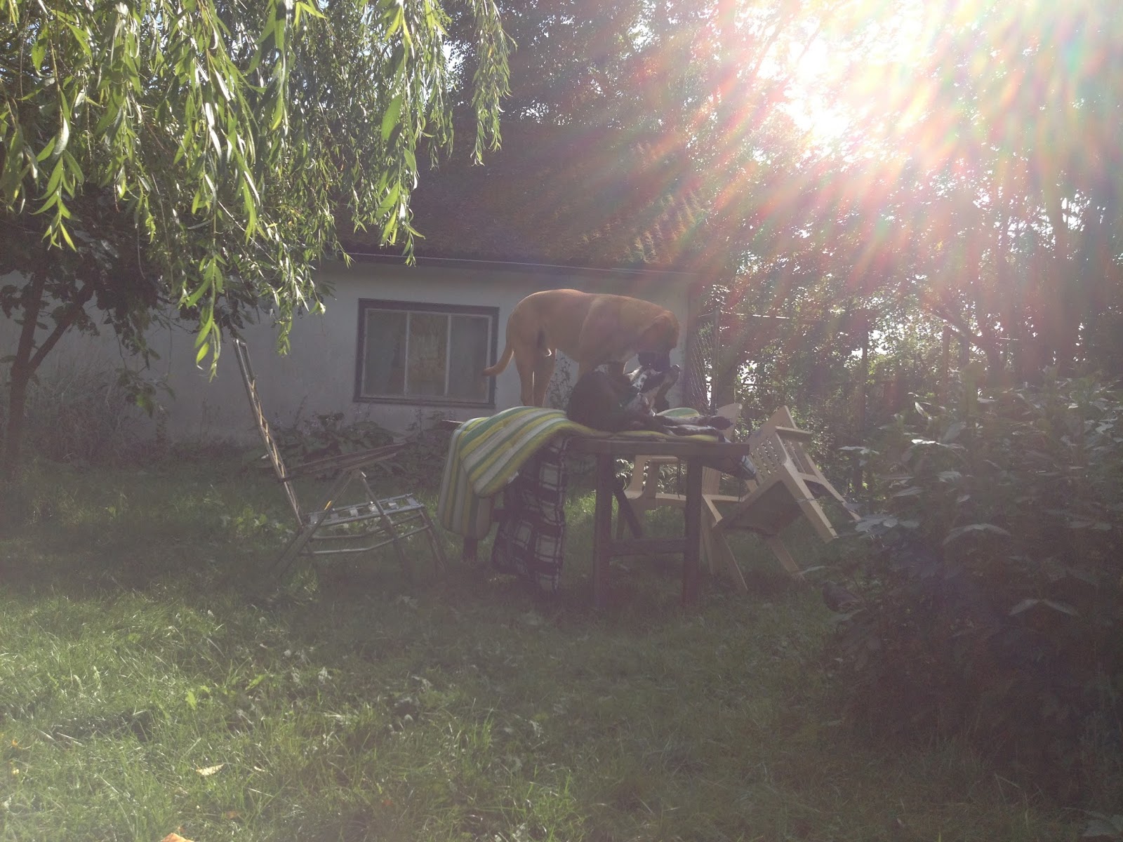 Tänkte mig en liten vilopaus och Fille la sig tillrätta på bästa platsen, bordet. Hugo tyckte vi skulle ägna oss åt roligare saker. När jag var obeveklig…