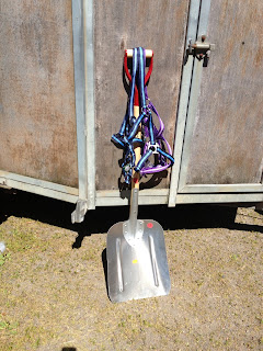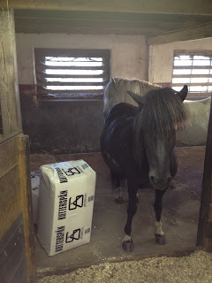 Alla våra grimmor har gått åt när unghästarna effektivt tagit av sig dem så nu blev det tre för en hundring. En ny skyffel till halva priset blev det också. Har i o f s en gammal avlagd skyffel som en barmhärtig pappa till tonåringens kompis skänkte när han nog tyckte lite synd om mig när vi flyttade hit och jag tagit mig vatten över huvudet… Den har i o f fungerat bra men är inte så stor.