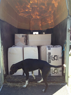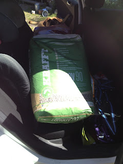 Dessutom fick jag styrketräning på köpet. 18 säckar spån, otympliga att bära och rätt tunga. Fick åtminstone hjälp att lasta på.