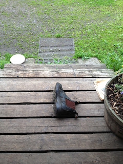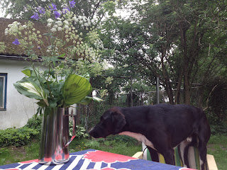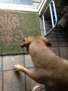 Som tur är var han tvungen att avbryta skoföretaget för att sköta om sin huvudsakliga uppgift. Att vakta matte! Det tar han på största allvar. Obehöriga göre sig icke besvär…