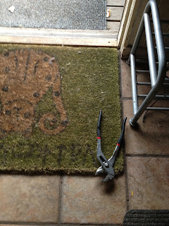 Det hördes suspekta ljud ifrån hallen, klonk, klonk, typ. Vem var där om inte tjuvaktiga Hugo som roade sig med… en polygrip?